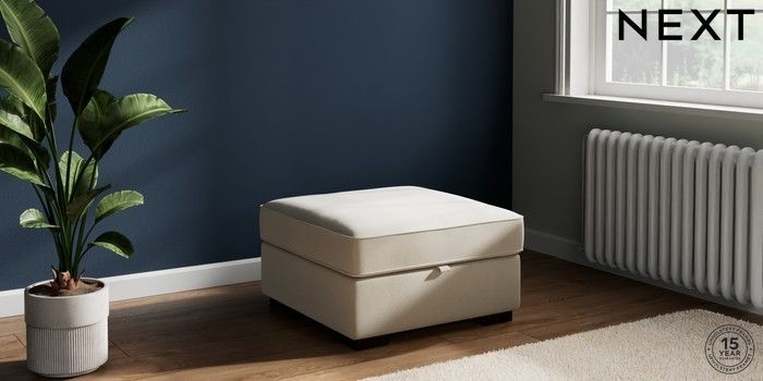 7.2.10 Buy Stamford Highback Storage Footstool Relaxed Linen Look Oyster Square Angle - Dark from the Next UK online shop Click here to use our accessible website
