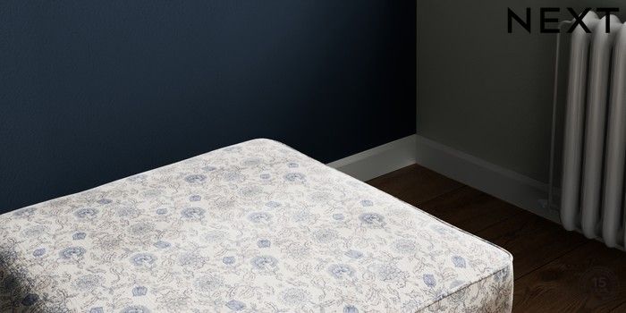 7.3.1 Buy Stamford Highback Storage Footstool Relaxed Linen Look Print Woodblock Floral Blue Square Angle - Gunmetal from the Next UK online shop Click here to use our accessible website