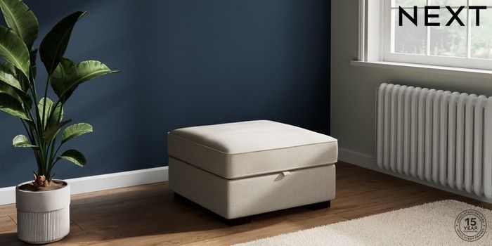 7.2.10 Buy Stamford Highback Storage Footstool Tweedy Chenille Oyster Square Angle - Dark from the Next UK online shop Click here to use our accessible website