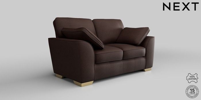 6.12.1 Buy Stamford Leather 2 Seater Small Sofa Rustic Leather Dark Brown Large Square Angle - Brushed Brass from the Next UK online shop Click here to use our accessible website