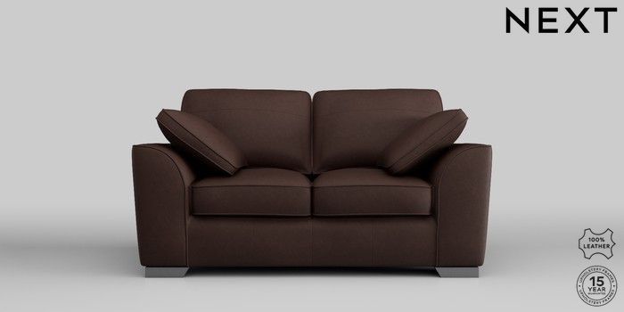 7.0.3 Buy Stamford Leather 2 Seater Small Sofa Rustic Leather Dark Brown Large Square Angle - Gunmetal from the Next UK online shop Click here to use our accessible website