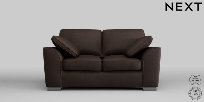 7.0.3 Buy Stamford Leather 2 Seater Small Sofa Turin Leather Dark Brown Large Square Angle - Gunmetal from the Next UK online shop Click here to use our accessible website