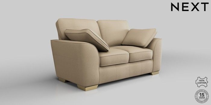 6.12.1 Buy Stamford Leather 2 Seater Small Sofa Turin Leather Light Natural Large Square Angle - Brushed Brass from the Next UK online shop Click here to use our accessible website