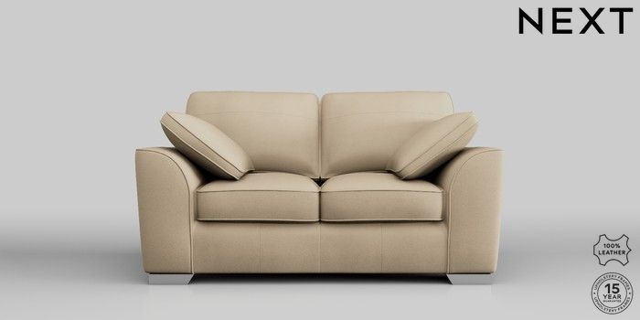 7.0.3 Buy Stamford Leather 2 Seater Small Sofa Turin Leather Light Natural Large Square Angle - Chrome Metal from the Next UK online shop Click here to use our accessible website