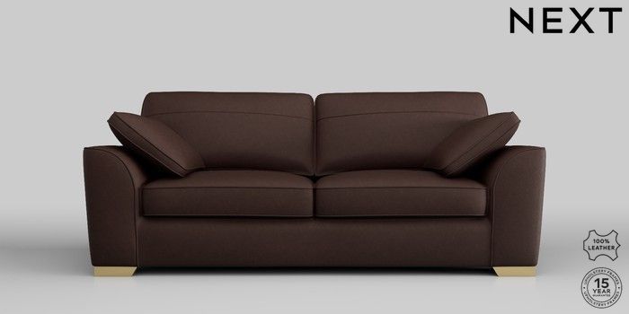 7.0.3 Buy Stamford Leather 3 Seater Sofa Rustic Leather Dark Brown Large Square Angle - Brushed Brass from the Next UK online shop Click here to use our accessible website