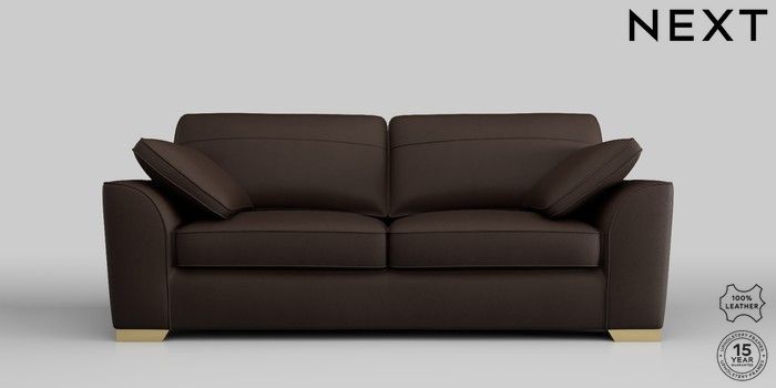 7.0.3 Buy Stamford Leather 3 Seater Sofa Turin Leather Dark Brown Large Square Angle - Brushed Brass from the Next UK online shop Click here to use our accessible website