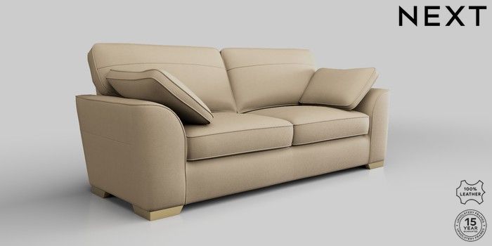 6.12.1 Buy Stamford Leather 3 Seater Sofa Turin Leather Light Natural Large Square Angle - Brushed Brass from the Next UK online shop Click here to use our accessible website