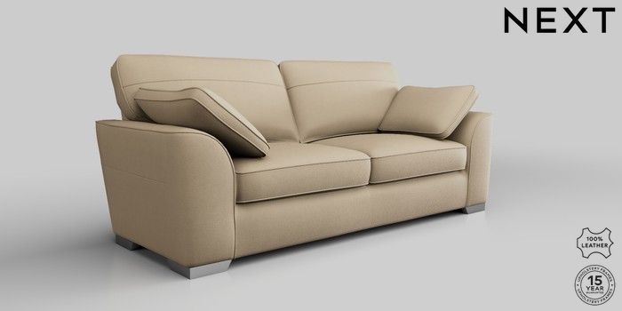 6.12.1 Buy Stamford Leather 3 Seater Sofa Turin Leather Light Natural Large Square Angle - Chrome Metal from the Next UK online shop Click here to use our accessible website