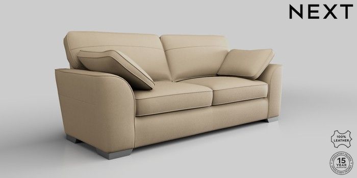 6.12.1 Buy Stamford Leather 3 Seater Sofa Turin Leather Light Natural Large Square Angle - Gunmetal from the Next UK online shop Click here to use our accessible website