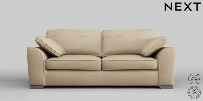7.0.3 Buy Stamford Leather 3 Seater Sofa Turin Leather Light Natural Large Square Angle - Gunmetal from the Next UK online shop Click here to use our accessible website