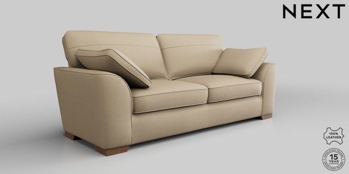6.12.1 Buy Stamford Leather 3 Seater Sofa Turin Leather Light Natural Large Square Angle - Mid from the Next UK online shop Click here to use our accessible website