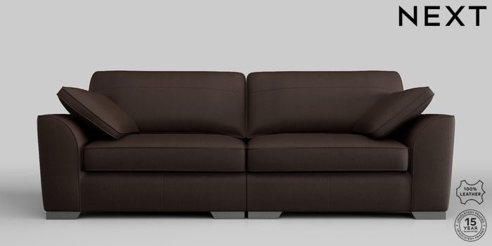 7.0.3 Buy Stamford Leather 4 Seater Sofa Turin Leather Dark Brown Large Square Angle - Gunmetal from the Next UK online shop Click here to use our accessible website