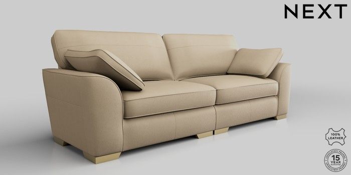 6.12.1 Buy Stamford Leather 4 Seater Sofa Turin Leather Light Natural Large Square Angle - Brushed Brass from the Next UK online shop Click here to use our accessible website