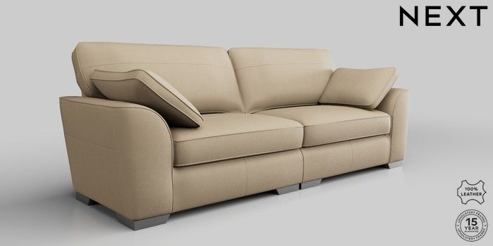 6.12.1 Buy Stamford Leather 4 Seater Sofa Turin Leather Light Natural Large Square Angle - Gunmetal from the Next UK online shop Click here to use our accessible website