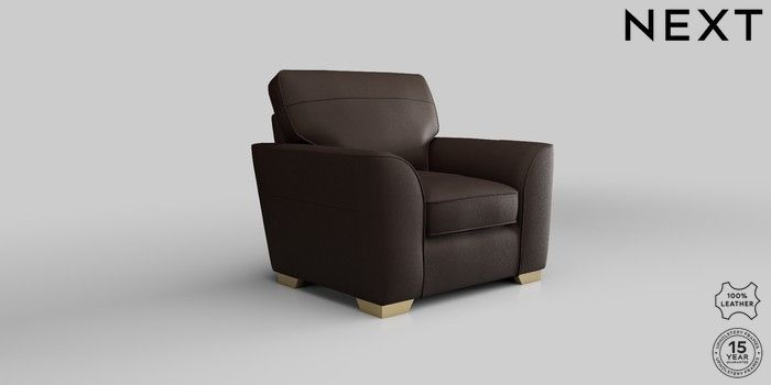 6.12.1 Buy Stamford Leather Armchair Turin Leather Dark Brown Square Angle - Brushed Brass from the Next UK online shop Click here to use our accessible website