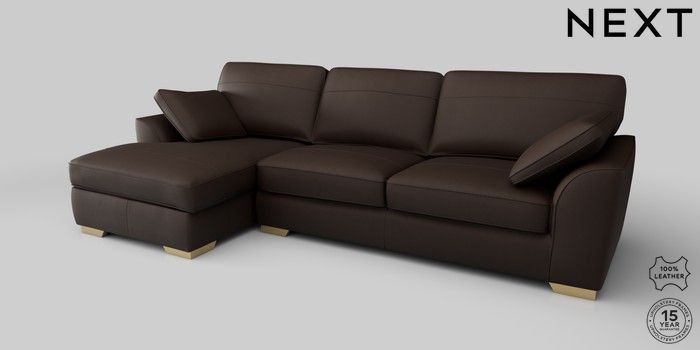 6.12.1 Buy Stamford Leather Medium Sofa Chaise - Left Hand Turin Leather Dark Brown Large Square Angle - Brushed Brass from the Next UK online shop Click here to use our accessible website