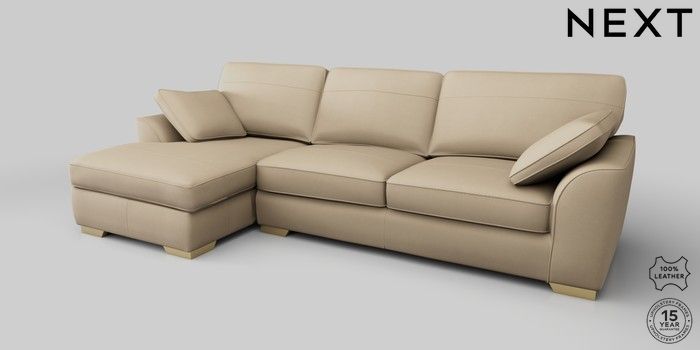 6.12.1 Buy Stamford Leather Medium Sofa Chaise - Left Hand Turin Leather Light Natural Large Square Angle - Brushed Brass from the Next UK online shop Click here to use our accessible website