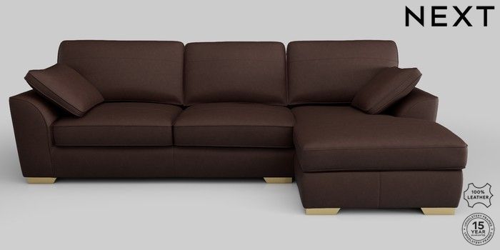 7.0.3 Buy Stamford Leather Medium Sofa Chaise - Right Hand Rustic Leather Dark Brown Large Square Angle - Brushed Brass from the Next UK online shop Click here to use our accessible website