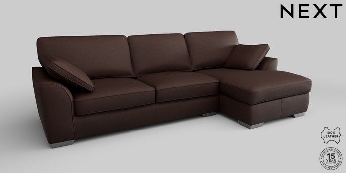 6.12.1 Buy Stamford Leather Medium Sofa Chaise - Right Hand Rustic Leather Dark Brown Large Square Angle - Gunmetal from the Next UK online shop Click here to use our accessible website