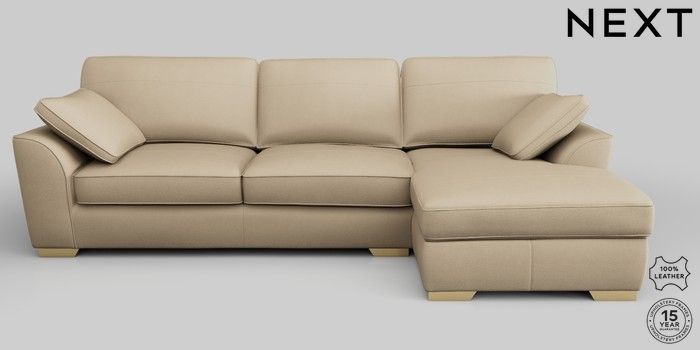 7.0.3 Buy Stamford Leather Medium Sofa Chaise - Right Hand Turin Leather Light Natural Large Square Angle - Brushed Brass from the Next UK online shop Click here to use our accessible website