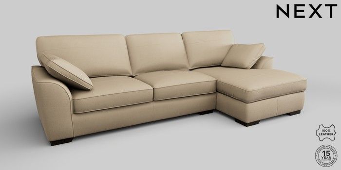 6.12.1 Buy Stamford Leather Medium Sofa Chaise - Right Hand Turin Leather Light Natural Large Square Angle - Dark from the Next UK online shop Click here to use our accessible website