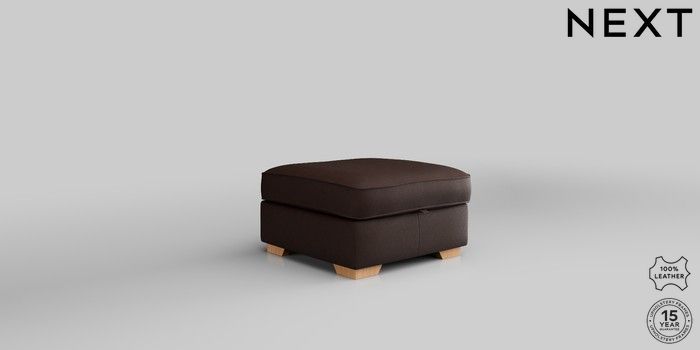 6.12.1 Buy Stamford Leather Storage Footstool Rustic Leather Dark Brown Square Angle - Light from the Next UK online shop Click here to use our accessible website