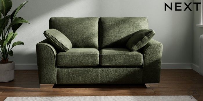 7.2.6 Buy Stamford 2 Seater Small Sofa Boucle Chenille Dark Moss Green Large Square Angle - Chrome Metal from the Next UK online shop Click here to use our accessible website
