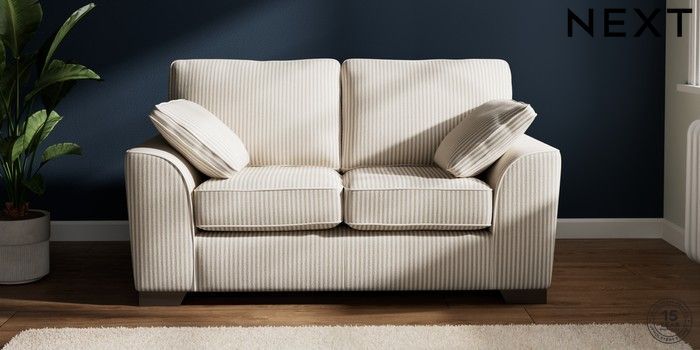 7.3.1 Buy Stamford 2 Seater Small Sofa Chenille Stripe Natural Large Square Angle - Gunmetal from the Next UK online shop Click here to use our accessible website