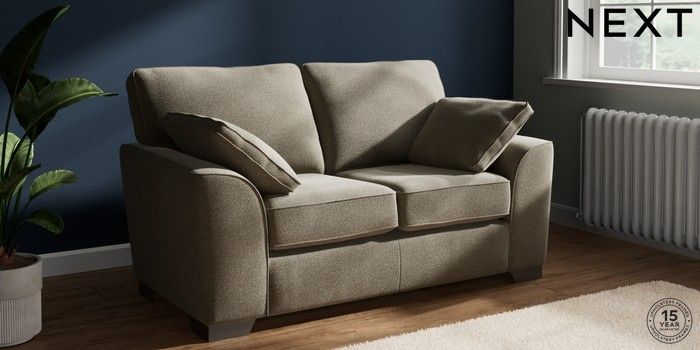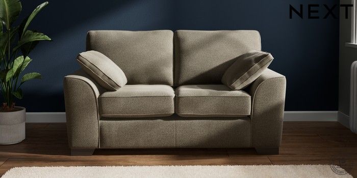 7.2.10 Buy Stamford 2 Seater Small Sofa Chunky Marl Light Olive Green Large Square Angle - Gunmetal from the Next UK online shop Click here to use our accessible website