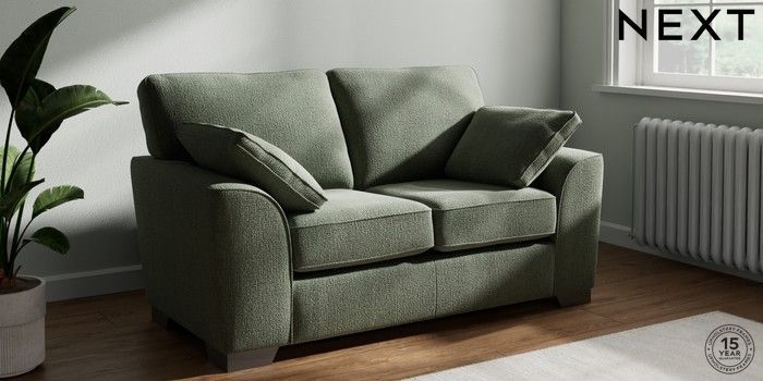 7.2.10 Buy Stamford 2 Seater Small Sofa Chunky Texture Mid Forest Green Large Square Angle - Gunmetal from the Next UK online shop Click here to use our accessible website