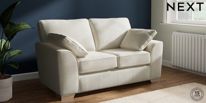 7.2.10 Buy Stamford 2 Seater Small Sofa Chunky Texture Oyster Large Square Angle - Chrome Metal from the Next UK online shop Click here to use our accessible website