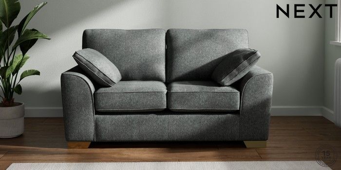 7.2.6 Buy Stamford 2 Seater Small Sofa Cotswold Chenille Dark Grey Large Square Angle - Brushed Brass from the Next UK online shop Click here to use our accessible website
