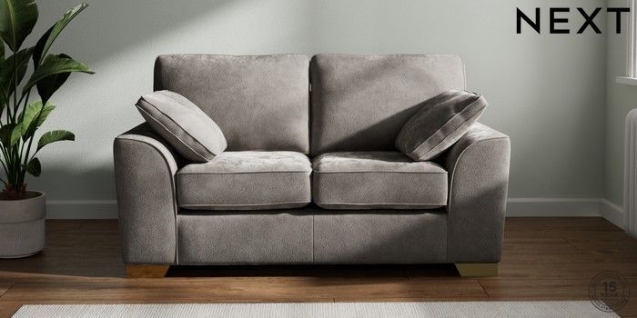 7.2.6 Buy Stamford 2 Seater Small Sofa Distressed Velour French Grey Large Square Angle - Brushed Brass from the Next UK online shop Click here to use our accessible website