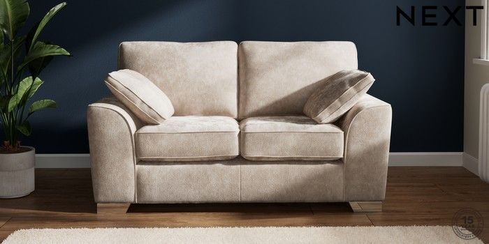 7.2.6 Buy Stamford 2 Seater Small Sofa Distressed Velour Mid Natural Large Square Angle - Chrome Metal from the Next UK online shop Click here to use our accessible website