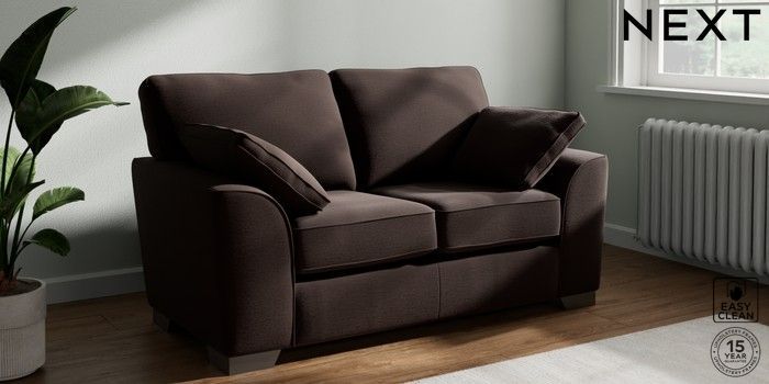 7.3.1 Buy Stamford 2 Seater Small Sofa Fine Chenille Easy Clean Chocolate Brown Large Square Angle - Gunmetal from the Next UK online shop Click here to use our accessible website