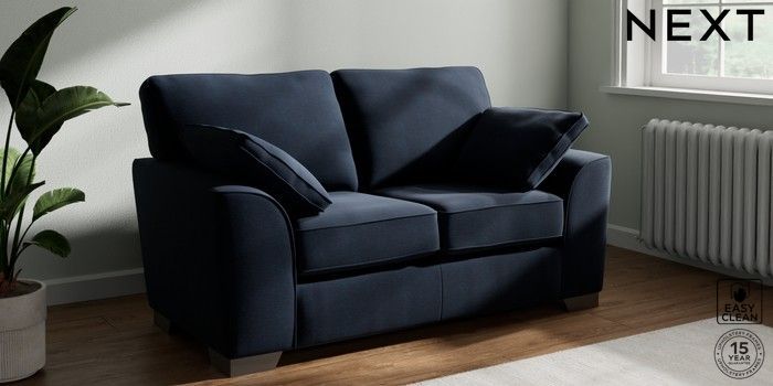 7.3.1 Buy Stamford 2 Seater Small Sofa Fine Chenille Easy Clean Dark Navy Blue Large Square Angle - Gunmetal from the Next UK online shop Click here to use our accessible website