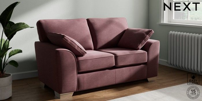 7.3.1 Buy Stamford 2 Seater Small Sofa Fine Chenille Easy Clean Mid Mulberry Purple Large Square Angle - Chrome Metal from the Next UK online shop Click here to use our accessible website