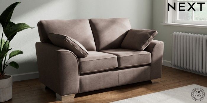7.2.10 Buy Stamford 2 Seater Small Sofa Luxe Chenille Mink Brown Large Square Angle - Chrome Metal from the Next UK online shop Click here to use our accessible website