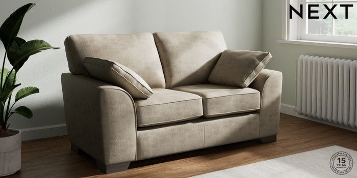 7.3.1 Buy Stamford 2 Seater Small Sofa Monza Faux Leather Easy Clean Mink Brown Large Square Angle - Gunmetal from the Next UK online shop Click here to use our accessible website