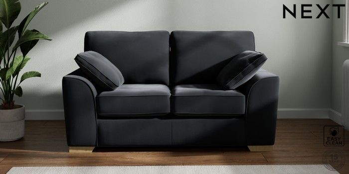 6.12.1 Buy Stamford 2 Seater Small Sofa Plush Velvet Easy Clean Charcoal Grey Large Square Angle - Light from the Next UK online shop Click here to use our accessible website