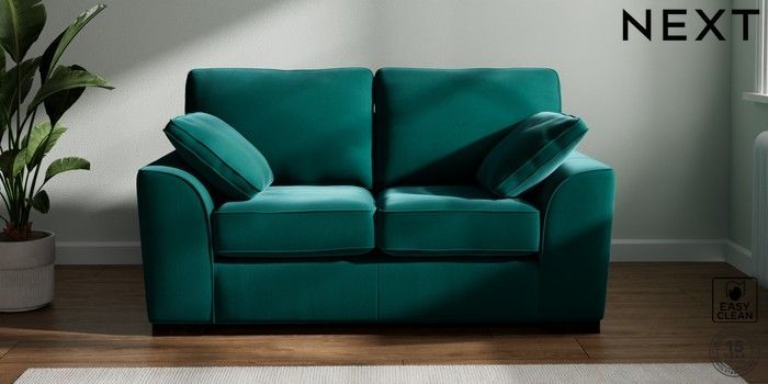 7.2.10 Buy Stamford 2 Seater Small Sofa Plush Velvet Easy Clean Juniper Green Large Square Angle - Dark from the Next UK online shop Click here to use our accessible website