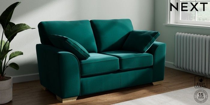 7.3.1 Buy Stamford 2 Seater Small Sofa Plush Velvet Easy Clean Juniper Green Large Square Angle - Light from the Next UK online shop Click here to use our accessible website