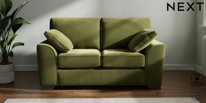 7.3.1 Buy Stamford 2 Seater Small Sofa Plush Velvet Easy Clean Mid Olive Green Large Square Angle - Gunmetal from the Next UK online shop Click here to use our accessible website