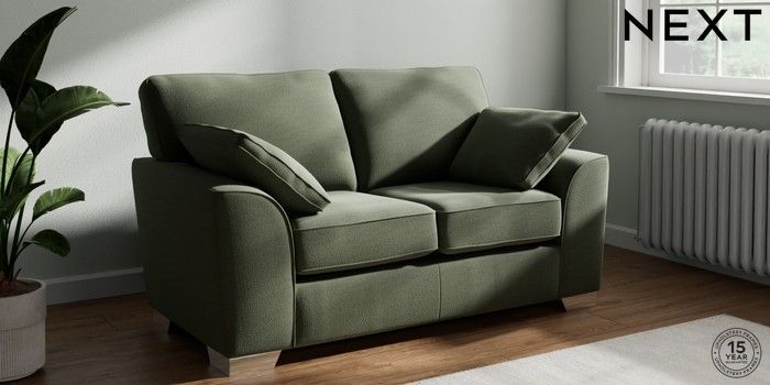 7.3.1 Buy Stamford 2 Seater Small Sofa Relaxed Linen Look Dark Green Large Square Angle - Chrome Metal from the Next UK online shop Click here to use our accessible website