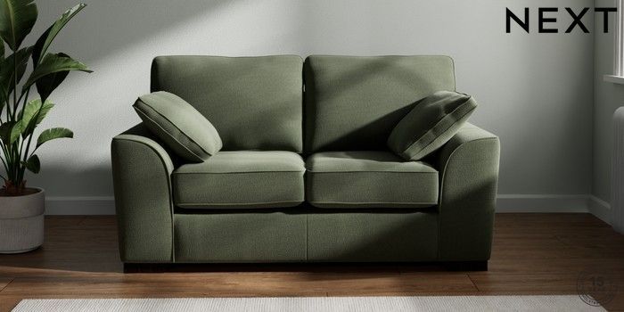 7.2.10 Buy Stamford 2 Seater Small Sofa Relaxed Linen Look Dark Green Large Square Angle - Dark from the Next UK online shop Click here to use our accessible website