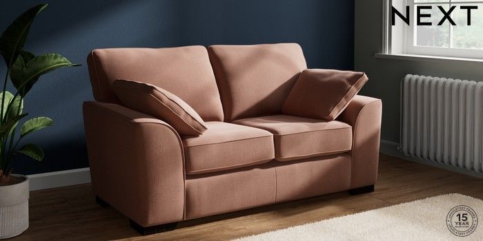 7.2.10 Buy Stamford 2 Seater Small Sofa Relaxed Linen Look Light Rust Brown Large Square Angle - Dark from the Next UK online shop Click here to use our accessible website
