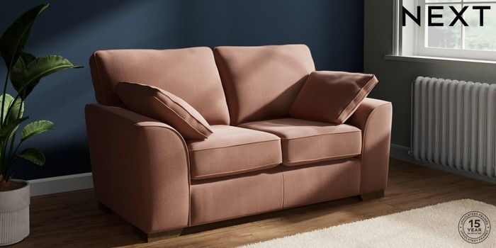 7.2.10 Buy Stamford 2 Seater Small Sofa Relaxed Linen Look Light Rust Brown Large Square Angle - Mid from the Next UK online shop Click here to use our accessible website