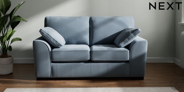 7.2.10 Buy Stamford 2 Seater Small Sofa Relaxed Linen Look Mid Blue Large Square Angle - Dark from the Next UK online shop Click here to use our accessible website