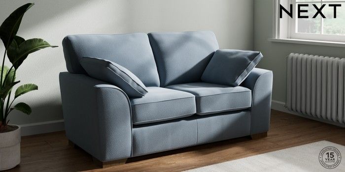 7.2.10 Buy Stamford 2 Seater Small Sofa Relaxed Linen Look Mid Blue Large Square Angle - Mid from the Next UK online shop Click here to use our accessible website
