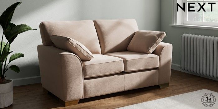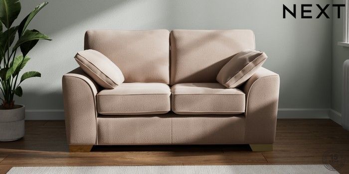 7.2.10 Buy Stamford 2 Seater Small Sofa Relaxed Linen Look Mid Natural Large Square Angle - Brushed Brass from the Next UK online shop Click here to use our accessible website